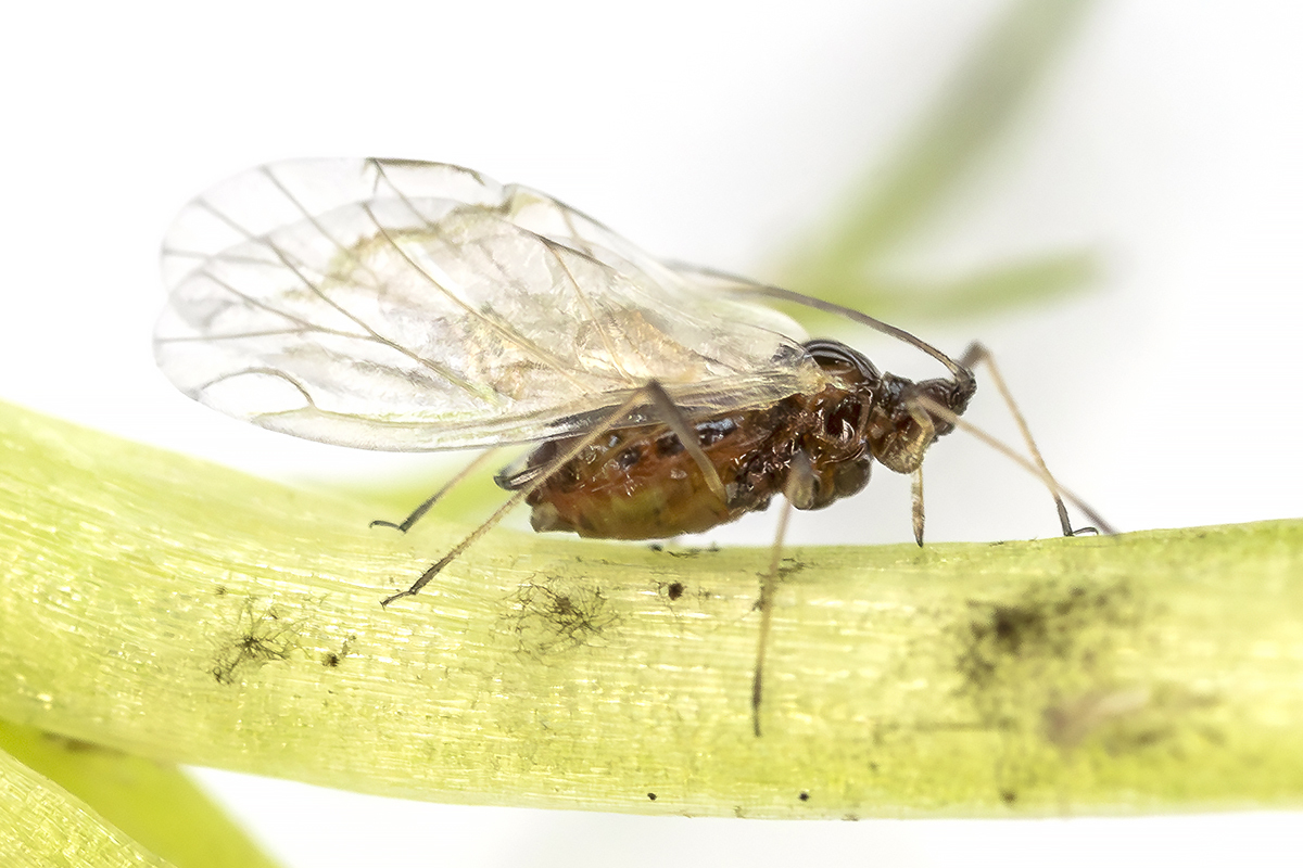 Siivettömien kirvojen väri vaihtelee. Ne voivat olla vaaleanvihreitä, vaaleanpunaisia tai kellertäviä. Viileissä olosuhteissa kehittyneet kirvat ovat usein tummempia väriltään. Siivellisten kirvojen pää ja keskiruumis ovat mustanruskeat, takaruumis kellanvihreä tai punertava. Sen yläpinnalla on rusehtavia täpliä. Niiden tuntosarvet ovat noin ruumiin mittaiset. Selkäputket ovat pitkähköt, ohuet ja niiden kärkiosa on yleensä lievästi tummunut. Siivetön kirva on 1,2 -2,5 mm ja siivellinen 1,4 2,3 mm.
